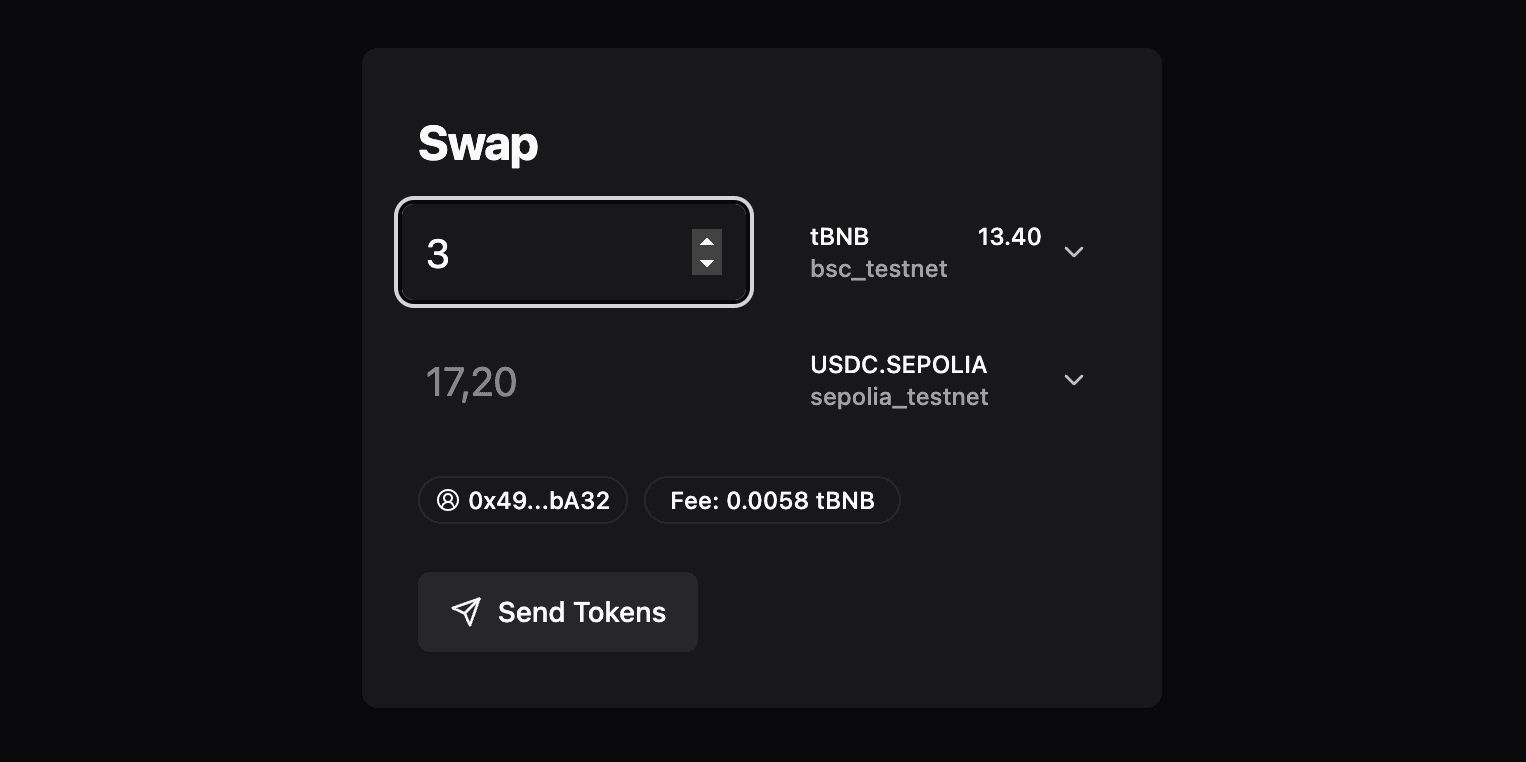 For cross-chain swaps the component depends on a universal swap contract. Complete the swap tutorial and deploy your own contract, or use the contract address from the example below. contract or use the contract address from the example below.